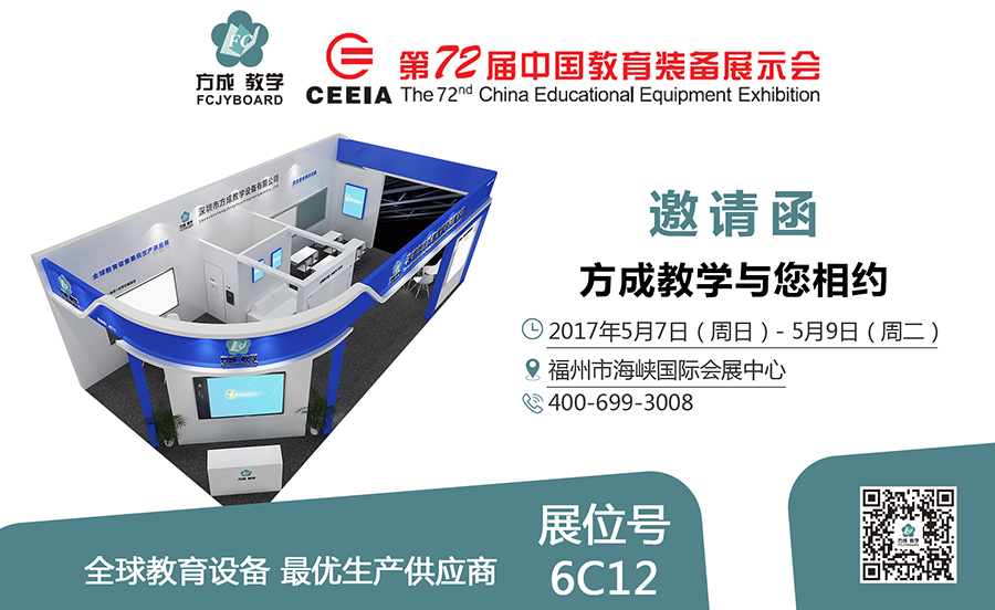 又是一年春意盎然,又是一次久別重逢,2017年5月7日至9日我們在福州市海峽國際會展中心迎來了第72屆中國教育裝備展示會,在這個廣闊的平臺上,方成教學主力推出新產品亮相于6號館C12,我們將熱忱恭候你的光臨!