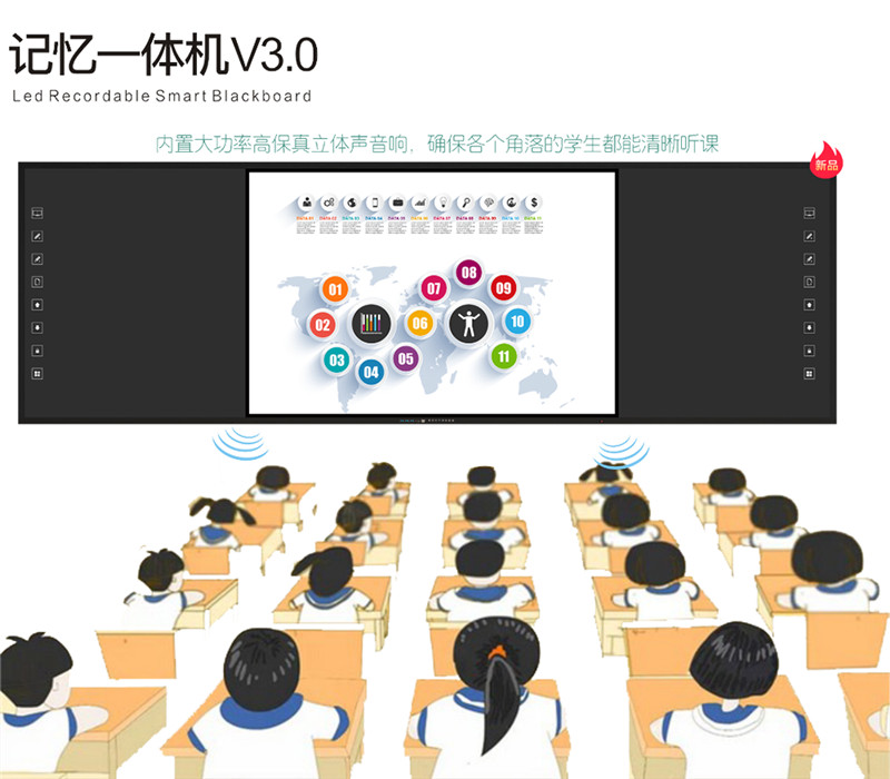 如今,我們看到不少學校,尤其是城市里的部分學校,那面記憶中樸素的黑板,已被替換為富含科技元素,智能化、現代化的板書教學記憶一體機。科教興國中的“科教”,可謂名副其實,走進了現實。