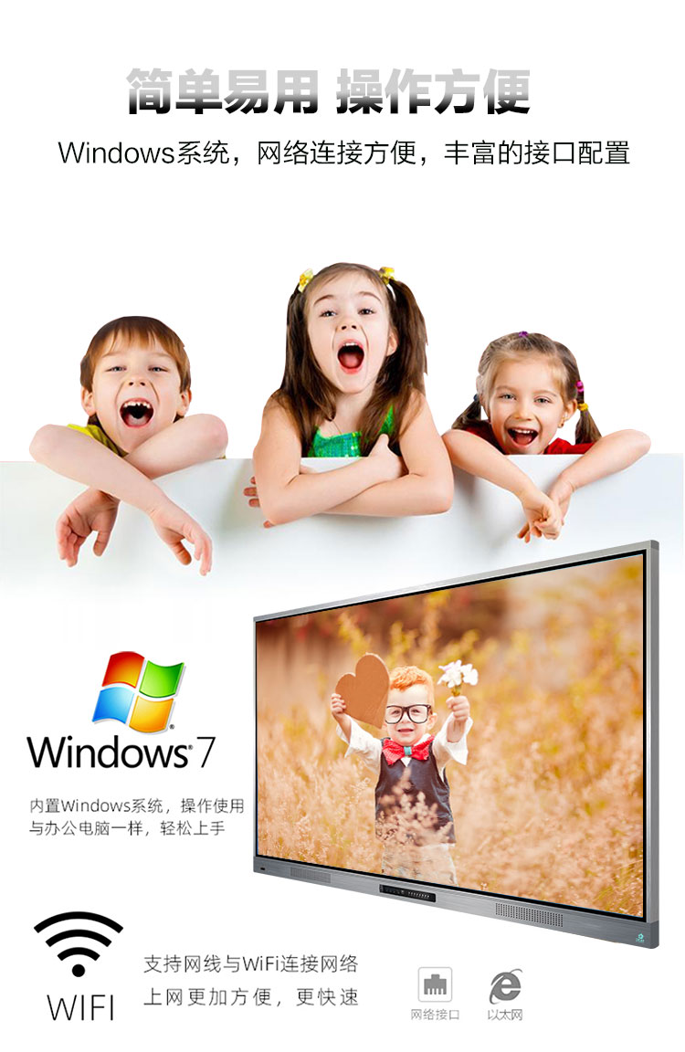 3、超窄邊框時尚外觀,教學(xué)會議都適用